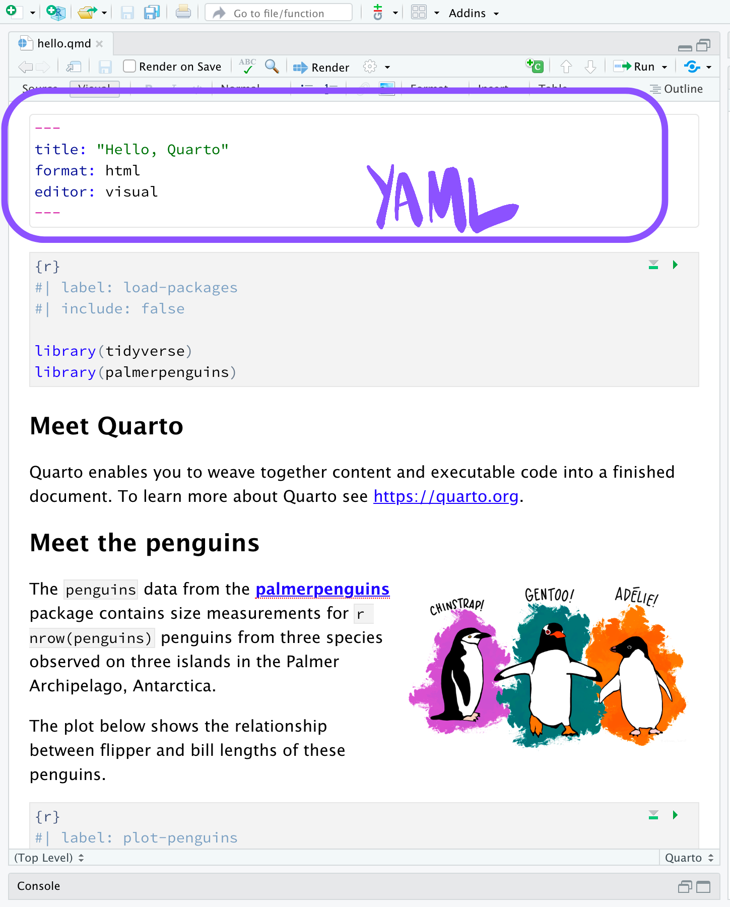Local onde são inseridas configurações sobre o documento (formatação, data, título, autor, entre outros). É sempre inserido no início do documento e delimitado por —.